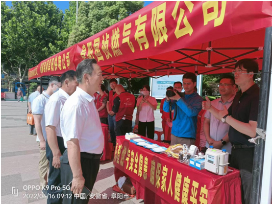 為進一步強化居民燃氣安全使用常識,提高居民安全用氣意識,6月16日,百川能源阜陽燃氣在市、縣應急管理局的統(tǒng)一安排下,圍繞全國第21個安全生產(chǎn)月“遵守安全生產(chǎn)法,當好第一責任人”的主題,分別在阜陽市政府廣場、太和縣文廟廣場、潁上縣郵政廣場、臨泉縣姜子牙文化廣場開展了安全生產(chǎn)月宣傳活動,市人大副主任王玉峰、太和縣陳建華縣長、臨泉縣江利國縣長及潁上縣政府有關領導、主管部門領導參加了此次宣傳。